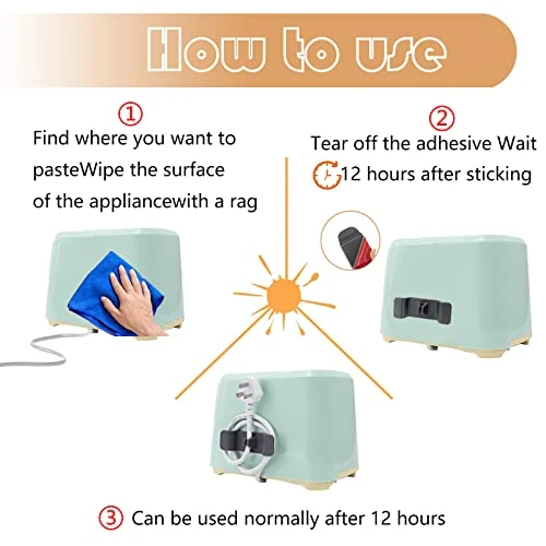 - 【Note】In order to firmly fix, before installing kitchen appliance cord wrap, please scrub location to be fixed with water, wait for surface to dry and then fix cord bundlers for appliances, wait 12h before use.