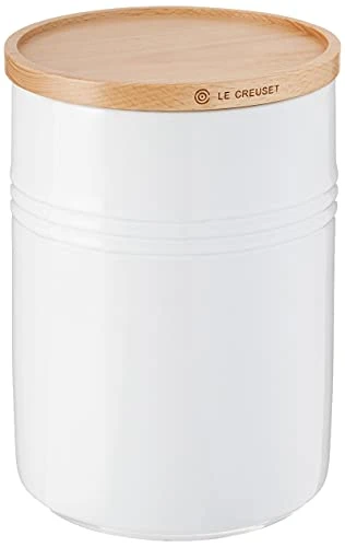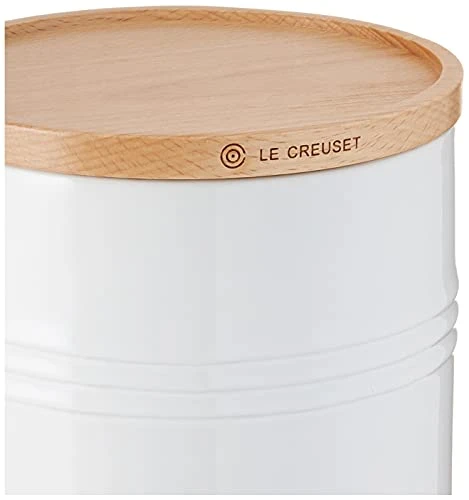 - Canister is safe for dishwasher and metal utensils; wood lid is hand wash only