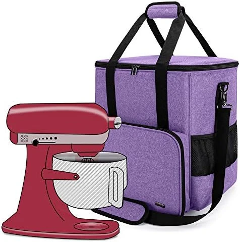 - MULTIPLE COMPARTMENTS: Wide opening design makes it easy to get your mixer and accessories in and out. ( Please put the flat beater, dough hook and wire shield into the mixer bowl firstly and then put the machine in the mixer bag. ) Several extra pockets for putting attachments like pasta roller & cutter set. (PS. You can also store your baking supplies in.)