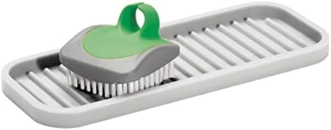 - QUICK DRY: Thoughtfully designed with raised stable ridges; This design allows air to flow and water to evaporate quickly so your bar soap, scrubbers, steel wool, and sponges dry quickly and completely in between each use; Air circulates to prevent mold and mildew on sponges and scrubbers for a healthier, more sanitary kitchen; A raised outer edge keeps water contained and off of kitchen counters and sinks