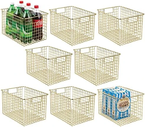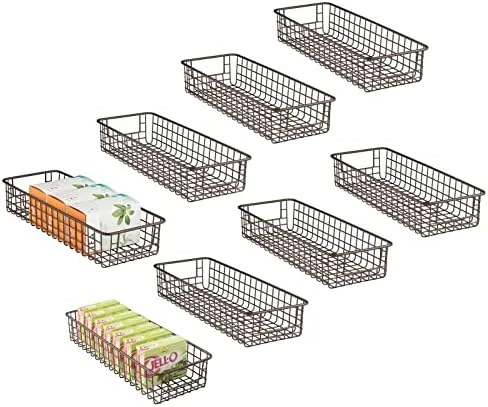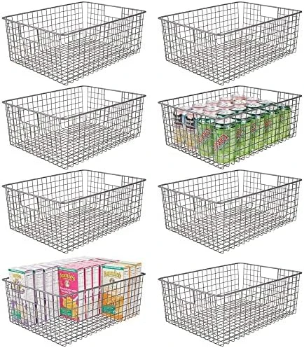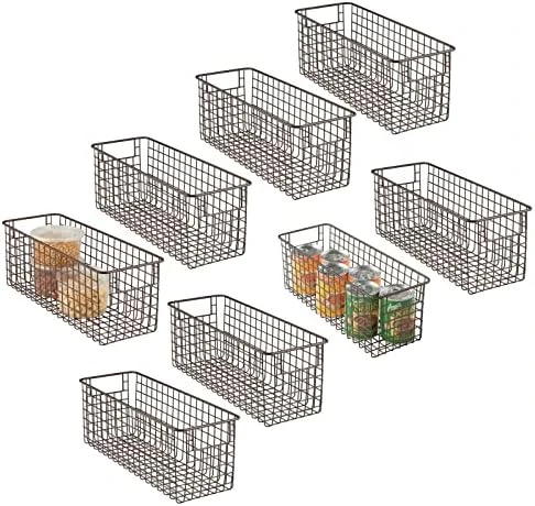 - PORTABLE: Easy-grip built-in side handles make it convenient to pull this tote off the shelf, out of cabinets or wherever you store them; The integrated handles make these perfect for upper shelves, you can use the handles to pull them down; Use multiple bins together to create a customized organization system that works for you; Keep items organized and easy to find with this vintage-inspired modern wire bins