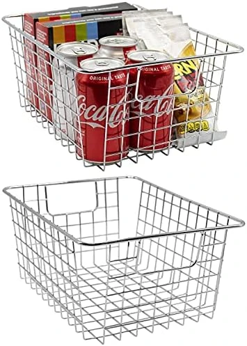 - QUALITY DESIGN — Modern rectangular wire bins (deep style) — Complements rustic, farmhouse, vintage retro, and shabby chic home décor — Made of iron with powder coated finish (silver color is chrome plated) — Wipe clean — Measures approximately 12″ L x 9″ W x 5.6” H
