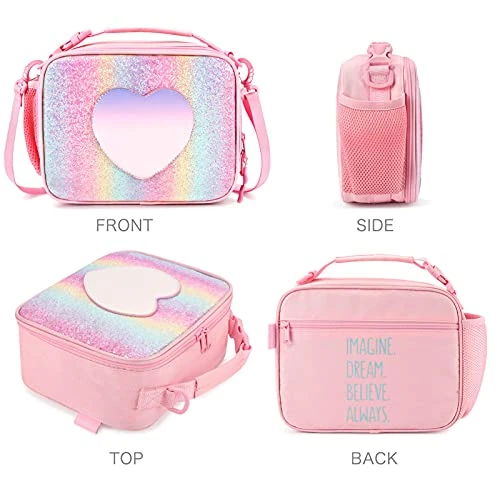 - ❤ PERFECT GIFT FOR KID GIRLS – Cute design with heart shape in front of lunch bag. It’s a hit and trendy element among the little girls. Easy for matching with different kinds of backpack and bring so much fun to your little princess’ lunchtime.Perfect gift for your daughter, granddaughter, niece, etc. Your little one will obsessed with this fashion and practical school partner