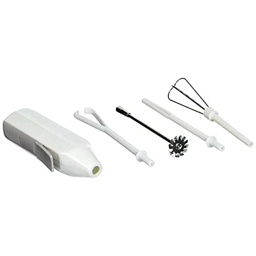 - Includes four attachments: whip, stir, blend, and beat