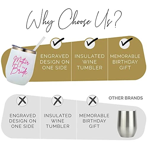 - PERFECT FOR MOTHER OF THE BRIDE GIFT – This Stainless Steel 12oz Stemless Wine Tumbler is perfect gift for the mother of the bride, this mother of the bride cup with straw, this great mother of the bride tumbler will be something she will never forget!