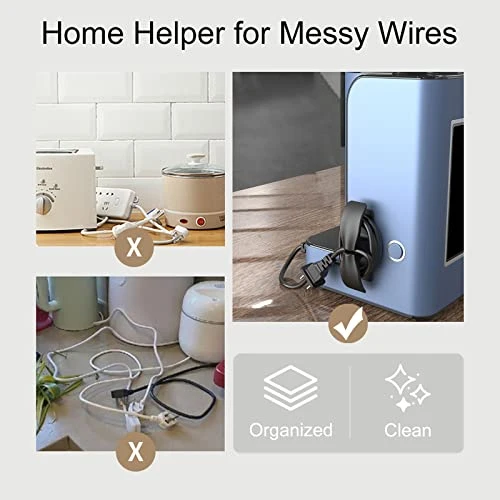 - KEEP KITCHEN NEAT AND TIDY – Are you struggling with cluttered kitchen cords when using small appliances? Our NKTDWO Kitchen Appliance Cord Winder is an excellent solution for organizing. Simply roll up the cords and secure them in place, creating a larger and tidier tabletop space, while also reducing the safety risks of various electrical appliances, preventing electric shock or fire caused by electrical wires. Keep your kitchen appliances’ wires in order with ease.