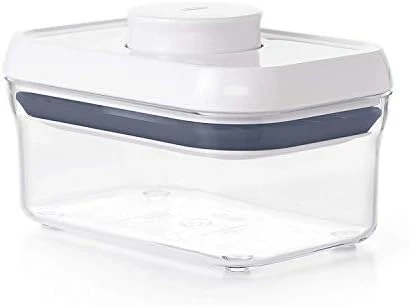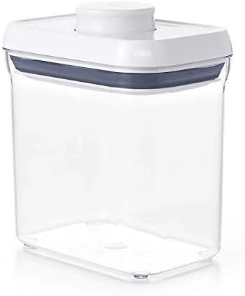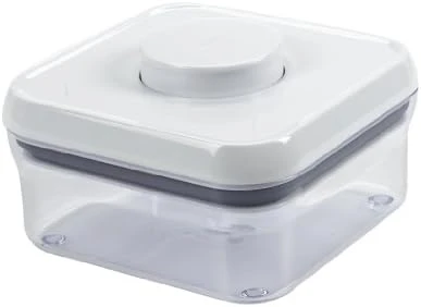 - Push the button for an airtight seal, push again to release. Button pops up to double as a built-in handle