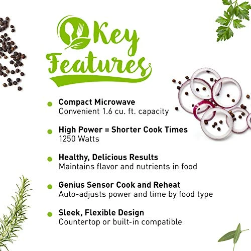 - Smart cooking settings with Genius sensor: Built-in automatic genius sensor adjusts power and times based on different foods; Other advantages include 14 Preset menu items, quick-minute timer, delay start and child safety lock