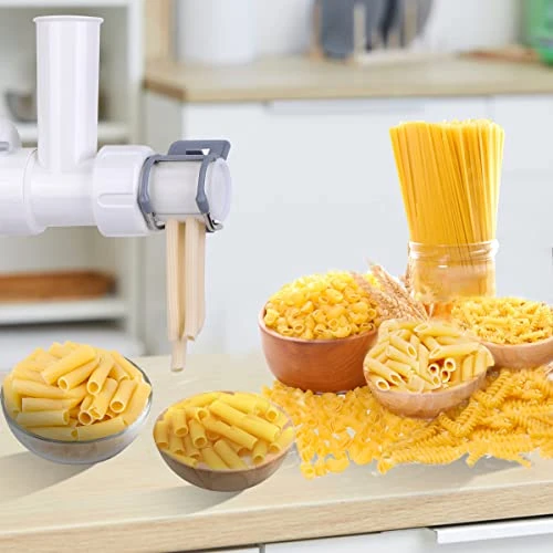 - SIX PASTA SHAPE: The Gourmet Pasta maker attachment for KitchenAid has six fresh pasta outlet shapes from scratch easily, including Spaghetti, Bucatini, Three-sided noodles, Rigatoni, Small Macaroni, and Large Macaroni outlet. This Kitchenaid Pasta maker Attachment, Makes homemade pasta so easy.