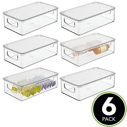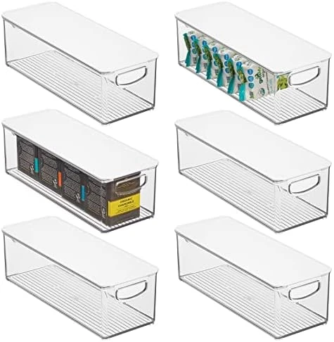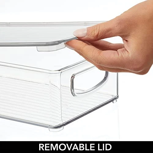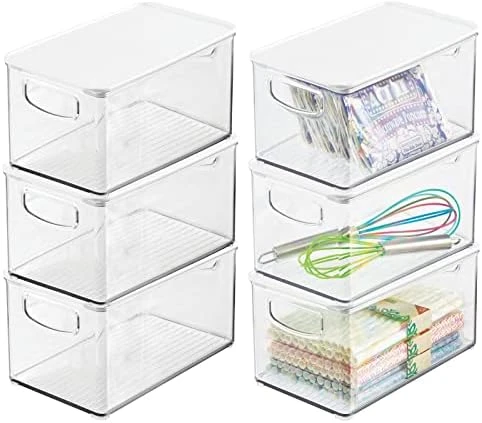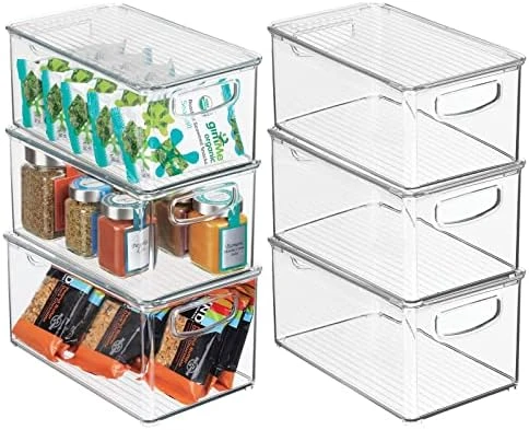 - HANDLES & LID: Built-in, easy-grip side handles make it easy to transport from shelf to table or island; Organize all of your kitchen essentials and create handy go-to supply baskets to make organizing and everyday living a little easier; The integrated feet keep these containers secure when stacked; Removable lids keep contents protected and dust-free; Store kitchen essentials: towels, candles, baking supplies, straws, and skewers; Great for busy families and professional organizers
