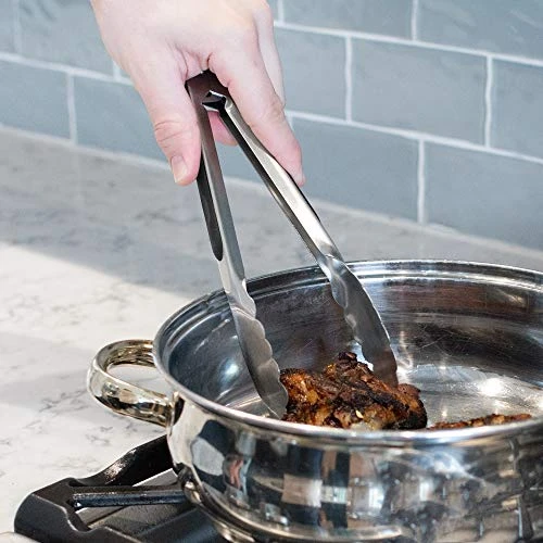 - Safety First – Lift and flip on the grill easily and safely with these heavy duty steel tongs! Prevent the risk of burns by using these fantastic 12 and 9 inch Kitchen Tongs!