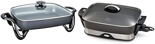 - Product 2: Heavy cast aluminum base features a deluxe nonstick surface, inside & out. skillet pan & cover are dishwasher safe with the heat control removed.