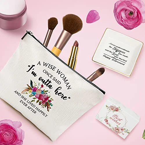 - WHAT’S INSIDE? 1) 12 oz Wine Tumbler Cup with Lid with funny word 2) Inspirational printed jewelry dish show how important she is 3) Elegant and beautiful bracelet with lady bug 4)Humorous sayings on the water-proof makeup bag 5) Super soft purple socks reminds the queen has retired 6) “Never forget the difference you’ve made” keychain to bring her smile everytime she bring it 7) Greeting card (write your well wishes)