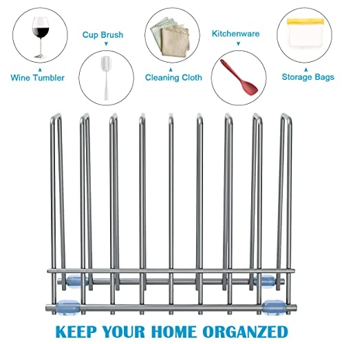 - Upgrade Kitchen Drying Rack: The kitchen rack help you organize your kitchen tool such as pocket fork, spoon, silicone gel shovel, storage bags which will make your kitchen dry and clean. The rack with 2 layers at one side also be used for drying your makeup brushes and orderly storage them to make the makeup table more tidy.