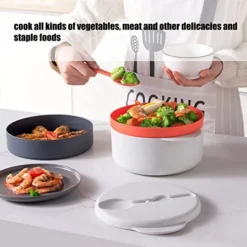 Steaming Container, Microwave Rice Cooker Multi Layer Stackable Double Ear Handle 2L For Home