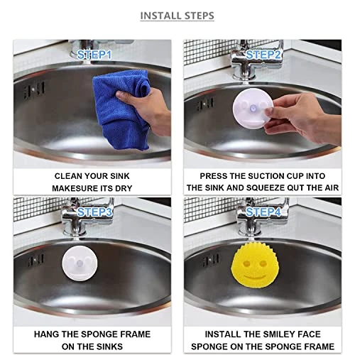 - 【Premium Material】Made entirely of non-toxic, BPA-free food grade silicone material, this sponge holder is durable and not easily deformed. You can use this sink caddy on your kitchen or bathroom sink. This sponge holder is designed to hold all standard smiley sponges as well as any smiley limited edition sponges.