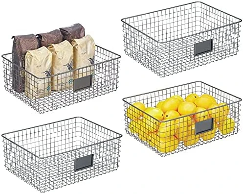 - FUNCTIONAL & VERSATILE: Organize all of your kitchen essentials; Great for dry goods and other kitchen items such as: towels, candles, small appliances and kitchen tools; These also work in the refrigerator or freezer; Classic open wire design offers roomy and easy storage for any room in your home; Use multiple bins side by side for larger spaces or use them individually; Try these in closets, bedrooms, bathrooms, laundry rooms, craft rooms, mudrooms, offices, playrooms, and garages