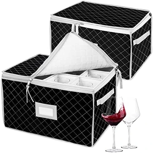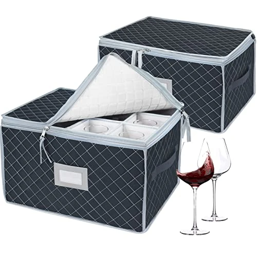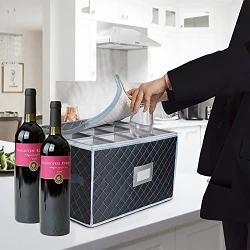 - [24 SEPARATE COMPARTMENTS DIVIDERS] Cup cardboard divider to keep glassware secure from breakage.stemware storage cases can be stored in hutches, cabinets, pantry closets, or buffet.