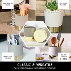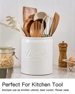 Handmade Kitchen Utensil Holder Hamada And Purple, Made In USA, Ceramic Utensil Crock Organizer