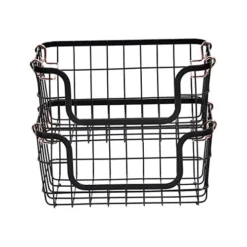 Amazon Basics Stackable Metal Wire Storage Basket Set For Kitchen Or Bathroom – Black/Rose Gold