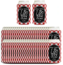 I Do BBQ Wedding Favors Custom Text Save-the-Dates 48-pack Customized Can Coolies Drink Coolers Red