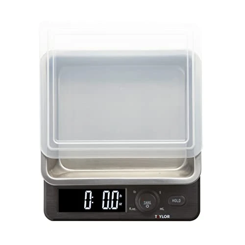- QUALITY AND PRECISION: Taylor has been making precision products for kitchen measurement for over 150 years, Using on the highest quality components for accurate weights. Max capacity: 22 pound x 0.1 ounce / 10,000 grams x 1 gram; also weighs liquids. Container capacity is 3 cups.
