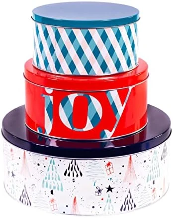 - Assorted Colors and Sizes : Each metal tin is a different size so you can find the best fit for each of your goodies. The round shape makes them perfect to use as craft organizers, cookie storage, or useful holiday gift wrapping for random bits and baubles. Choose from one of two designs that are suitable for Christmas, Holiday, and winter themed gifting to bring joy to someone’s day