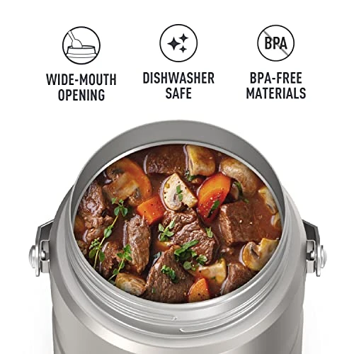 - SWEAT-PROOF: Exterior stays cools to the touch with hot contents and sweat-proof with cold. THERMOS brand food jars are dishwasher safe, top rack recommended