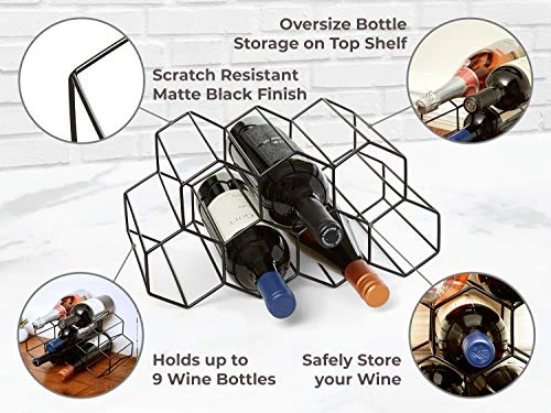 - ✅ PROTECT YOUR WINE! – This geometric wine rack was designed specifically to hold bottles in place and prevent them slipping out and breaking. The honeycomb wine rack allows you to store your wine bottles on their side keeping the cork moist, preventing it from drying out and ruining your wine!