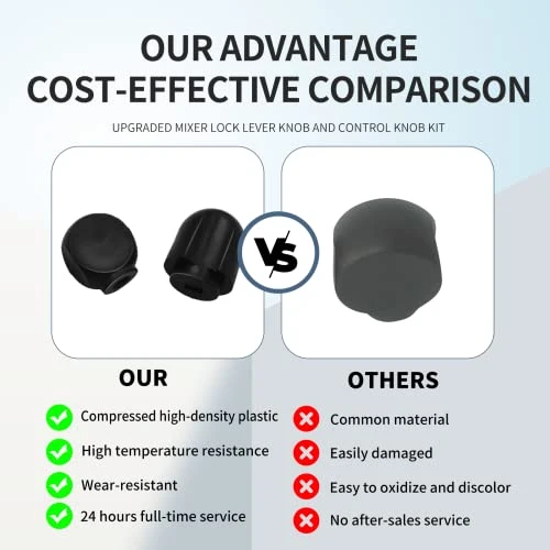- 💗【Upgrade function】Mixer knob kit quality exceeds OEM. We investigated customer feedback on the product, and asked the factory to re-upgrade the product, Made of high-density compressed high-quality plastic, it mainly solves the problem of easy peeling, breaking and slipping of the mixer knob set, and maximizes the replacement quality and service life of the mixer lock rod and knob, so that customers can use it with confidence.
