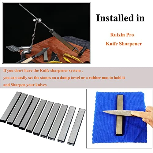 - If you don’t have the Knife sharpener system ,you can easily set the stones on a damp towel or a rubber mat to hold it and Sharpen your knives,Sharpened a couple of small knives kitchen paring knife with no issue.
