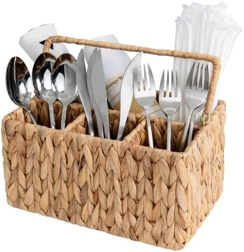 - The tightly woven silverware caddy with a firm bottom prevents cutlery from falling out.