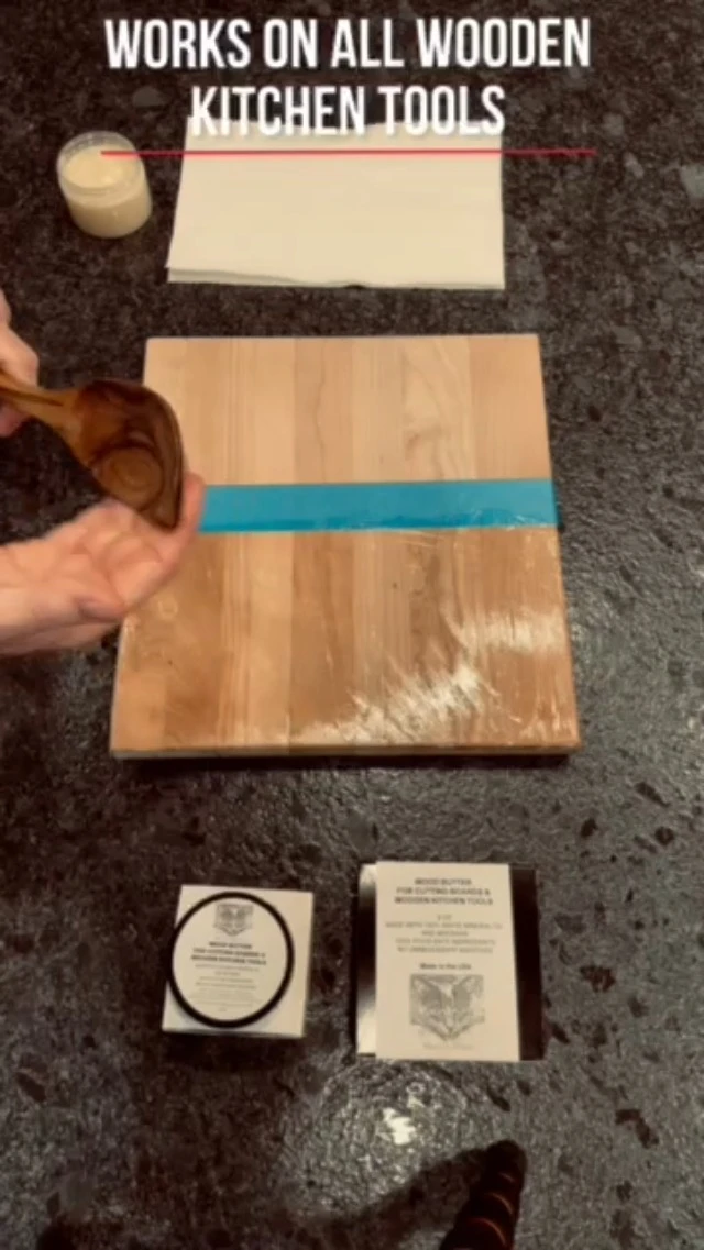 Macy;s Place Wood Butter for wooden cutting boards and kitchen tools. This board cream is designed to provide a penetrating protective barrier for all your wood kitchen tools. Macy;s Place Wood Butter contains only 100% food grade white mineral oil and all natural beeswax. There are no other unnecessary additives. Regular application prevents splitting, cracking, and fraying for long lasting beauty of boards, spoons and butcher block surfaces. Just apply a thin layer of butter wax, let sit to absorb (overnight when possible) and remove with a clean dry paper towel or cotton rag. Its just that simple.