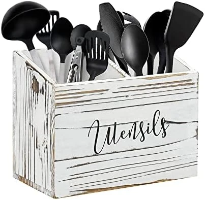 - 【Great Gift Idea】This farmhouse spoon holder is really suitable for housewarming gift. This handmade silverware caddy has two colors for you to choice. It will be a surprise for your friend when they receive this wonderful & practical holder.