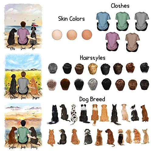 - [Custom Design]: Custom dog mugs are available in 2 sizes: 11 oz. and 15 oz. You just click “Customize Now” to select the size, choose design for back side. And choose scenery, skin color, clothes, hairstyle, dog breed and enter your names for front side.
