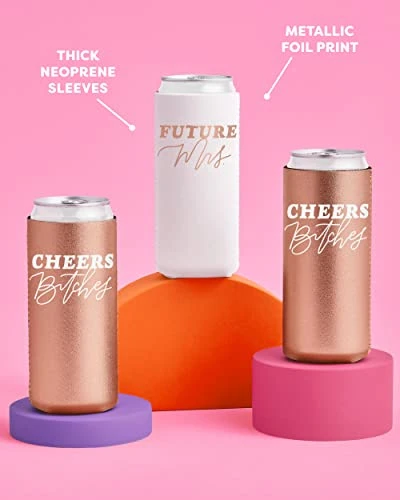 - Rose Gold Everything: we know you love rose gold as much as we do.. So we made the cheers drink holders out of rose gold neoprene + use rose gold foil as the logo on the Future Mrs drink holder.