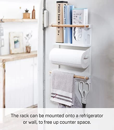 - MODERN DESIGN: The modern look of Yamazaki is meant to match your home decor with a light and airy design. The rack is made of sleek, metal steel and wood material. Keep frequently used items off of the counter yet quickly accessible.