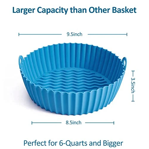 - BIGGER THAN OTHER: Our silicone air fryer basket measures 9.5 inches and fits air fryers 6QT 7QT 8QT or larger. Also please note that quality and customer satisfaction are very important to us and we have a full satisfaction guarantee, otherwise please contact us. Order risk-free.
