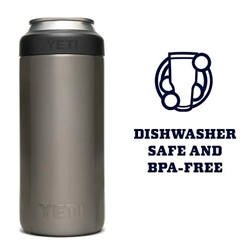 - The YETI Slim Colster is dishwasher safe and measures: 2.25 in x 6 in